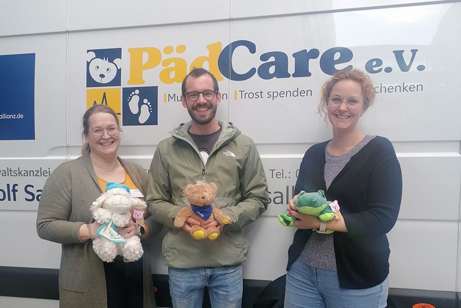 Wir bekamen wieder Besuch von Kevin von PädCare e.V. mit im Gepäck zwei große Säcke Kuscheltiere für unsere kleinen Patienten. Egal, ob der Teddy Paddy, Schaf oder Krokodil, die Kinder schließen sie sofort ins Herz und der Aufenthalt im Krankenhaus gestaltet sich gleich leichter. Herzlichen Dank an PädCare e. V. und Kevin für ihre jahrelange Unterstützung. Wer auch unterstützen möchte schaut auf die Homepage des Vereins: PädCare e.V