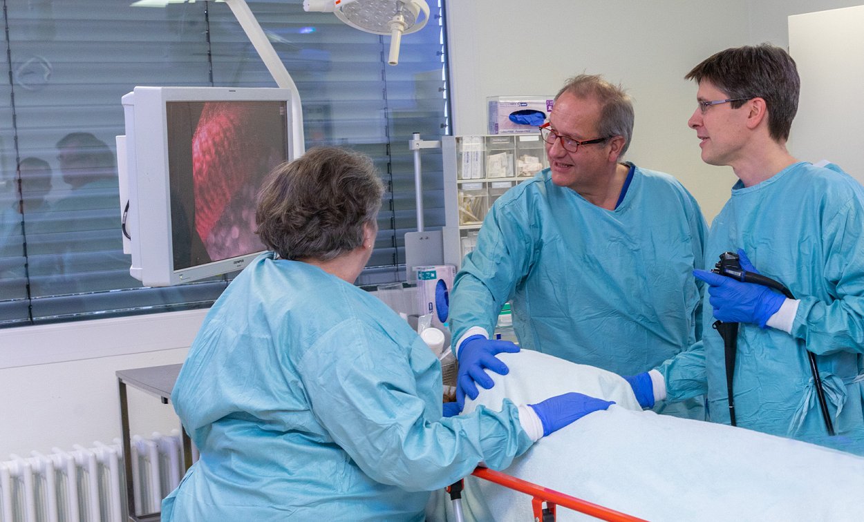 Ein Team von 5 Oberärzten, 1 Facharzt und 16 speziell für die Endoskopie geschulten Pflegekräften stellen zusammen mit dem Chefarzt eine 24-stündige Bereitschaft an 7 Tagen pro Woche sicher.