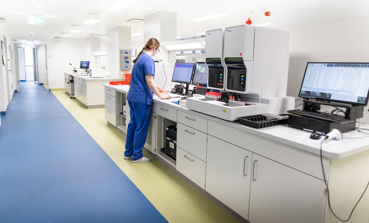 Zusätzlich verfügen wir über ein 24-Stunden-Notfalllabor und ein Blutdepot, das ebenfalls rund um die Uhr in Betrieb ist und ein integriertes immunhämatologisches Labor beinhaltet. Die patientennahen Labormethoden, auch bekannt als Point-of-Care Testing (POCT), werden kontinuierlich von unserer POCT-Koordination überwacht. Unser Institut verpflichtet sich den höchsten Qualitätsstandards der Labormedizin, sowohl für die Diagnostik unserer Patienten als auch für die Messung von Laborparametern für klinische Studien. Wir sind gemeinsam mit den RoMed Kliniken nach ISO 9001:2015 zertifiziert.